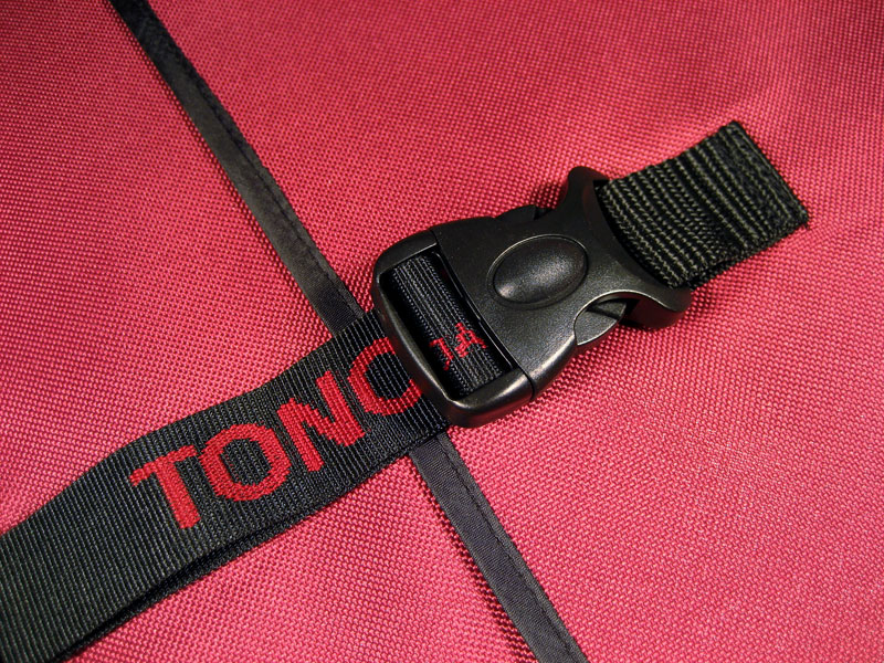 - Die Schnappverschlüsse an der Tonnenrückseite lassen sich leicht öffnen und schließen. Durch das verstellbare Gurtband wird das TONC universell.